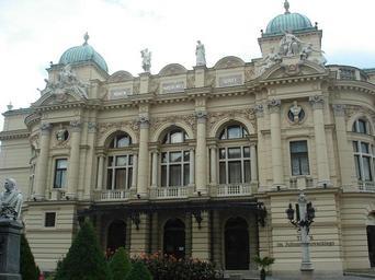 Keywords: 01410Kraków.JPG Kraków Poland Own 2007-07 Rj1979 Juliusz Słowacki Theatre Eclectic architecture in Poland Aleksander Fredro Monument in Kraków