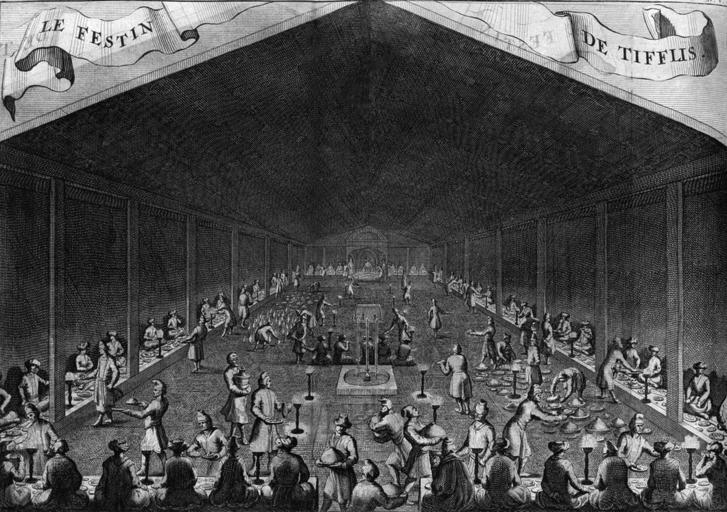 Keywords: 04 Chardin Royal banquet in Tbilisi.jpg ka სტუმრებისათვის გამართული სადილი ვახტა გ V-ის შაჰ ავაზის სასახლეში თბილისში ჟა შარდე ის ალბ მიდა en Royal banquet at the court of the Georgian king Vakhtang V Shah-Nawaz in Tbilisi From the travelogue of the French merchant Jean Chardin<br/> Rare antique print copper engraving of a Georgian wedding wedding of Tbilisi from the Dutch publication of 'Journal du voyage de Chevalier Chardin' Chardijn in Perse aux Indes Orientales Travels of Sir John into Persia and the Orient an account of the travels of Sir John Chardin in 4 volumes http //www iscra nl/U2257 jpg www iscra nl creator Jean Chardin 1687 100px Source http //www iscra nl/u2257 wedding_of_tbilis georgia htm ISCRA Antique maps and topographical antique prints from the Netherlands PD-old-100 Tbilisi in art Banquets in art Jean Chardin Nobility of Georgia Tbilisi in the 17th century |
