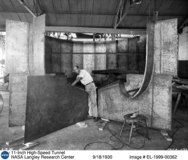 Keywords: people monochrome Description: Construction of 5 Foot Vertical Wind Tunnel. The 5 Foot Vertical Wind Tunnel was built to study spinning characteristics of aircraft. It was an open throat tunnel capable of a maximum speed of 80 mph. NACA engineer Charles H. Zimmerman designed the tunnel starting in 1928. Construction was completed in December 1929. It was one of two tunnels which replaced the original Atmospheric Wind Tunnel (The other was the 7x10-Foot Wind Tunnel). In NACA TR 387 (p. 499), Carl Wenzinger and Thomas Harris report that "the tunnel passages are constructed of 1/8-inch sheet iron, stiffened with angle iron and bolted together at the corners. The over-all dimensions are: Height 31 feet 2 inches; length, 20 feet 3 inches; width, 10 feet 3 inches. UID: SPD-NIX-EL-1999-0036 2 Description: Construction of 5 Foot Vertical Wind Tunnel. The 5 Foot Vertical Wind Tunnel was built to study spinning characteristics of aircraft. It was an open throat tunnel capable of a maximum speed of 80 mph. NACA engineer Charles H. Zimmerman designed the tunnel starting in 1928. Construction was completed in December 1929. It was one of two tunnels which replaced the original Atmospheric Wind Tunnel (The other was the 7x10-Foot Wind Tunnel). In NACA TR 387 (p. 499), Carl Wenzinger and Thomas Harris report that "the tunnel passages are constructed of 1/8-inch sheet iron, stiffened with angle iron and bolted together at the corners. The over-all dimensions are: Height 31 feet 2 inches; length, 20 feet 3 inches; width, 10 feet 3 inches. UID: SPD-NIX-EL-1999-0036 2 |