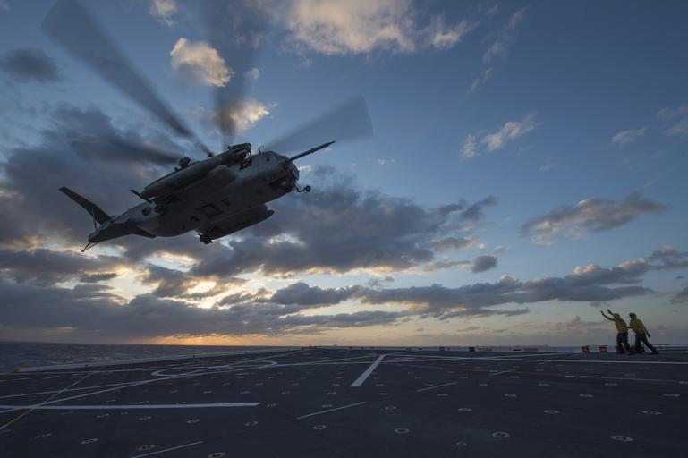 Keywords: uss anchorage ussanchorage pacific ocean pacificocean outdoor 140408-N-KL846-100 KANEOHE BAY, Hawaii (April 8, 2014) A CH-53E Super Stallion helicopter from Marine Heavy Helicopter Squadron (HMH) 463 launches from the flight deck of the amphibious transport dock ship USS Anchorage (LPD 23) during deck landing qualifications. Anchorage is performing training with the 3rd Marine Regiment, 3rd Marine Division, off the coast of Kaneohe Bay. (U.S. Navy photo by Mass Communication Specialist 2nd Class Christopher Lindahl/Released) 140408-N-KL846-100 KANEOHE BAY, Hawaii (April 8, 2014) A CH-53E Super Stallion helicopter from Marine Heavy Helicopter Squadron (HMH) 463 launches from the flight deck of the amphibious transport dock ship USS Anchorage (LPD 23) during deck landing qualifications. Anchorage is performing training with the 3rd Marine Regiment, 3rd Marine Division, off the coast of Kaneohe Bay. (U.S. Navy photo by Mass Communication Specialist 2nd Class Christopher Lindahl/Released) |
