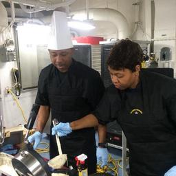 Keywords: chief's mess chiefsmess brunch ike cvn 69 cvn69 people 160626-N-XK202-014 MEDITERRANEAN SEA (June 26, 2016) - The aircraft carrier USS Dwight D. Eisenhower (CVN 69) (Ike) Command Master Chief Tyrone Blockton (left) and Senior Chief Intelligence Specialist Shakeena Sparks prepare waffles for Sailors during Sunday brunch in the aft mess decks of the ship. Ike, the flagship of the Eisenhower Carrier Strike Group, is conducting naval operations in the U.S. 6th Fleet area of operations in support of U.S. national security interests in Europe. (U.S. Navy Photo by MCC John Osborne/Released) 160626-N-XK202-014 MEDITERRANEAN SEA (June 26, 2016) - The aircraft carrier USS Dwight D. Eisenhower (CVN 69) (Ike) Command Master Chief Tyrone Blockton (left) and Senior Chief Intelligence Specialist Shakeena Sparks prepare waffles for Sailors during Sunday brunch in the aft mess decks of the ship. Ike, the flagship of the Eisenhower Carrier Strike Group, is conducting naval operations in the U.S. 6th Fleet area of operations in support of U.S. national security interests in Europe. (U.S. Navy Photo by MCC John Osborne/Released) |