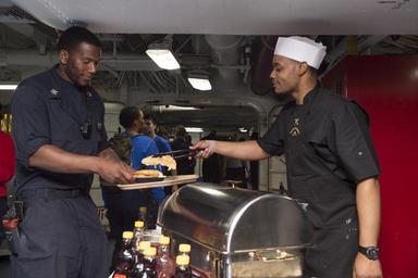 Keywords: cvn 69 cvn69 eisenhower ike deployment c6f mediterranean sea mediterraneansea operation inherent resolve operationinherentresolve csg 10 csg10 cs brunch indoor 160703-N-KK394-008 MEDITERRANEAN SEA (July 3, 2016) - Culinary Specialist 2nd Class Lugene Johnson serves waffles on the aft mess decks of the aircraft carrier USS Dwight D. Eisenhower (CVN 69) (Ike). Ike is deployed in support of Operation Inherent Resolve, maritime security operations and theater security operation efforts in the U.S. 6th Fleet area of operations. (U.S. Navy photo by Mass Communication Specialist 3rd Class Anderson W. Branch/Released) 160703-N-KK394-008 MEDITERRANEAN SEA (July 3, 2016) - Culinary Specialist 2nd Class Lugene Johnson serves waffles on the aft mess decks of the aircraft carrier USS Dwight D. Eisenhower (CVN 69) (Ike). Ike is deployed in support of Operation Inherent Resolve, maritime security operations and theater security operation efforts in the U.S. 6th Fleet area of operations. (U.S. Navy photo by Mass Communication Specialist 3rd Class Anderson W. Branch/Released) |