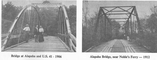 Keywords: 1906-1912 Alapaha Bridges.jpg en One memorable steel truss bridge that stood in the state of Florida is the Jennings Bridge It was located at the Alapaha River about 2 1 miles east of Jennings 0 6 miles downstream from State Road 150 The contract for building the bridge was awarded to the American Bridge Company of New York City for 2 788 on December 3 1901 by the Board of County Commisioners The bridge is no longer in existence It was a through Pratt pin-connected steel truss The only such design using die forged connections The Beaty Bridge The oldest steel truss bridge of Florida Located 1 5 miles northeast of Jennings Fl on the Alapahoochee River Pratt Pony truss built by Roanoke Bridge Company of Roanoke Virginia Built in March of 1911 at the cost of 4 650 completed in November 1911 Condemned in 1970 2012-06-14 An Early History of Hamilton County Florida By the Hamilton County Bicentennial Committee Published by the Jasper News-1976 Second Edition-Printed by Taylor's Printing and Office Supply Jasper Florida-1983 Special funding by the County Commisioners of Hamilton County Florida Committe of the Hamilton County Bicentennial Project Maud Havener Cora Hinton Virginia Bell Doris Peeples Betty Sue Zant Ann Malpas Lorraine Kiefer Mr Mrs R W Chance Mary Frances Lewis Lucile Buckles Leslie Compiled by Cora Hinton PD-USGov Uploaded with UploadWizard Alapaha River bridge |