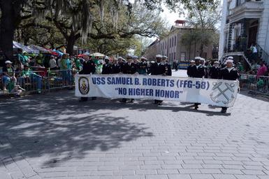 Keywords: 191st Savannah St. Patrick's Day Parade 150317-N-OS575-176.jpg en 150317-N-OS575-176 SAVANNAH Ga March 17 2015 Sailors from the guided-missile frigate USS Samuel B Roberts FFG 58 stationed at Naval Station Mayport march in the 191st Savannah St Patrick's Day Parade in Savannah Ga U S Navy photo by Mass Communication Specialist 2ND Class Sean P La Marr/Released Unit Navy Media Content Services DVIDS Tags NMCS; DVIDS Bulk Import 2015-03-17 Petty Officer 3rd Class Sean La Marr https //www dvidshub net/image/1824918/191st-savannah-st-patricks-day-parade 150317-N-OS575-176 2015-03-20 03 59 SAVANNAH GA US PD-USGov-Military-Navy Naval Station Mayport Images from DoD uploaded by Fæ |