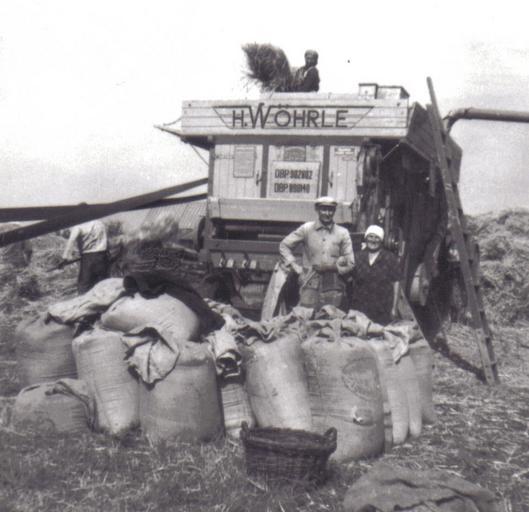 Keywords: 1956 Beim Dreschen.jpg views of Alsenborn in Rhineland-Palatinate Germany Beim Dreschen in Alsenborn Deutschland own 1956 Immanuel Giel Alsenborn Threshing machines