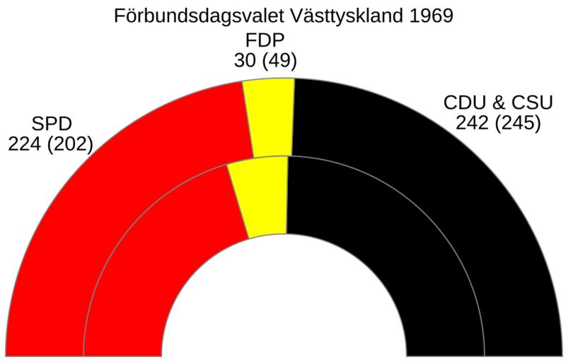 Keywords: 1969 federal german result SV.svg The composition of the Bundestag election in the outer half ring the composition of polling in the inside half ring; red SPD yellow FDP Black CDU and CSU Sammansättningen av förbundsdagen efter valet i den yttre halvringen sammansättningen före valet i den inre halvringen; rött SPD gult FDP svart CDU och CSU This file is based upon File 1969 federal german result Español png by en User Willhsmit at the English Wikipedia with Swedish title added by contributor valid SVG Inkscape-hand own 2011-11-6 Life of Riley Life of Riley 1969 Germany Bundestagswahl |