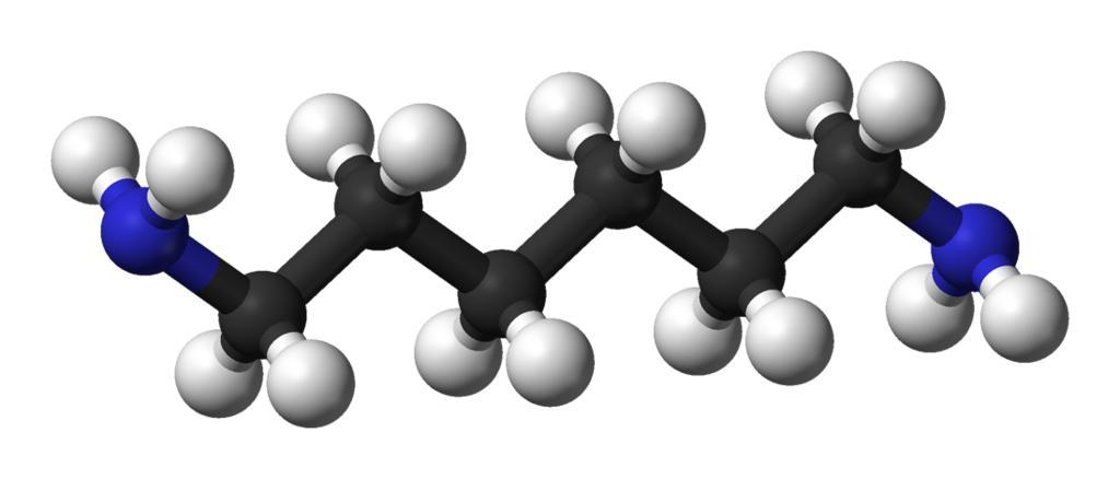 Keywords: 1,6-diaminohexane-3D-balls.png Ball-and-stick model of a molecule of the chemical compound 1 6-Diaminohexane Hexamethylenediamine Kugel-Stab-Modell eines Moleküls der chemischen Verbindung 1 6-Diaminohexan Hexamethylendiamin HMD HMDA Colour legend carbon <span style color 0000cc; >nitrogen</span> <span style color 999999; >hydrogen</span> Own Ben Mills Hexamethylendiamin |