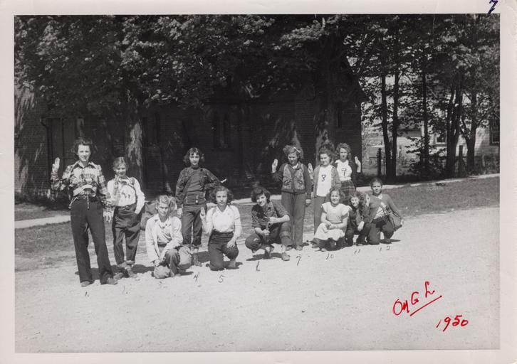 Keywords: girl guides girlguides hiking 1950 north addington northaddington mary lloyd marylloyd phyllis creighton phylliscreighton marilyn dicks marilyndicks barbara nicholson barbaranicholson marlene jerome marlenejerome nadine yearwood nadineyearwood laura wood laurawood verna rosenplot vernarosenplot dora shier dorashier hilda woodman hildawoodman audrey freeburn audreyfreeburn teresa jerome teresajerome photo border The Girl Guides are about to go hiking down the Skootamatta River . Photo taken in front of St. Paul's Anglican Church in Flinton near Freeburn's Store circa- 1950. Left-Right: 1. Mary Lloyd- Captain 2. Phyllis Creighton- standing 3. Marilyn Dicks - kneeling 4. Barbara Nicholson- standing 5. Marlene Jerome - kneeling 6. Nadine Yearwood - kneeling 7. Laura Wood - standing 8. Verna Rosenplot - standing 9. Dora Shier? standing 10. Hilda Woodman - kneeling 11. Audrey Freeburn - kneeling 12. Teresa Jerome - kneeling The Guides are making the 3 finger Girl Guide sign. The Girl Guides are about to go hiking down the Skootamatta River . Photo taken in front of St. Paul's Anglican Church in Flinton near Freeburn's Store circa- 1950. Left-Right: 1. Mary Lloyd- Captain 2. Phyllis Creighton- standing 3. Marilyn Dicks - kneeling 4. Barbara Nicholson- standing 5. Marlene Jerome - kneeling 6. Nadine Yearwood - kneeling 7. Laura Wood - standing 8. Verna Rosenplot - standing 9. Dora Shier? standing 10. Hilda Woodman - kneeling 11. Audrey Freeburn - kneeling 12. Teresa Jerome - kneeling The Guides are making the 3 finger Girl Guide sign. |