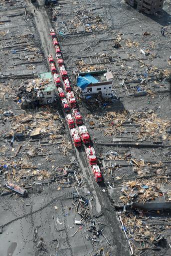 Keywords: 2011TsunamiFireVehicles.jpg Emergency vehicles staging in the ruins of Sukuiso Japan following the tsunami 2011年 北 方太平洋沖 による津波で破壊された岩手・漉磯の町の中を 緊 車両の列 http //www navy mil/view_image asp id 98619 Mass Communication Specialist 3rd Class Dylan McCord 2011-03-18 PD-USGov-Military-Navy 2011 Tōhoku earthquake relief 2011 Tōhoku earthquake damage and effects in Iwate prefecture Fire engines of Japan Red fire engines Convoys land vehicles Buildings damaged by tsunamis Yamada Iwate |