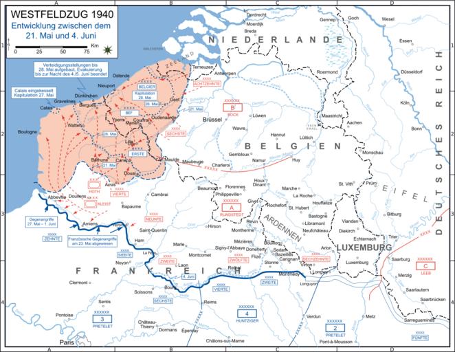 Keywords: 21May-4June1940-Fall Gelb de.svg de Militärische Situation während des Westfeldzuges zwischen dem 21 Mai und 4 Juni 1940 en Military situation during the Western Campain between 21tst May and 4th June 1940 Original source http //www dean usma edu/history/web03/atlases/ww2 20europe/WWIIEuropeIndex html derived English svg file File 21May-4June1940-Fall Gelb svg Original source The History Dept at the United States Army Academy<br> derived English svg file Tazadeperla this work Furfur with some minor corrections and modifications 2016-07-29 PD-USGov <gallery> File 10May-16May1940-Fall Gelb de svg <center>10 Mai-16 Mai</center> File 16May-21May1940-Fall_Gelb_de svg <center>16 -21 Mai</center> </gallery> Maps of Fall Gelb SVG maps showing history in German |