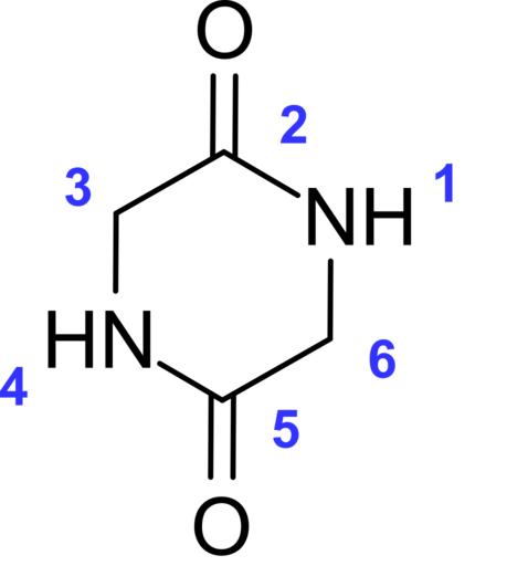Keywords: 2,5-Diketopiperazine num.svg en Numbered structure of 2 5-Diketopiperazine 2016-04-04 own Alandb other versions cc-zero Diketopiperazines