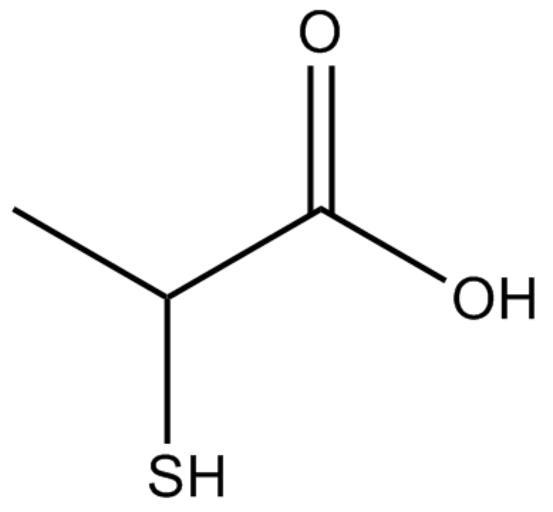 MAKE A MEME View Large Image 2-Mercaptopropanoic acid.png en 2-Mercaptopropanoic acid structure own Epop 2009-07-05 Carboxylic acids Thiols