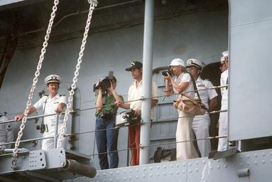 Keywords: apra harbor apraharbor guam (gu) guamgu northern mariana islands (mnp) northernmarianaislandsmnp 330-CFD-DN-ST-85-11054: Photographers and crewmen aboard the docked combat stores ship USS Niagra Falls (AFS 3) observe welcoming activities for the ship. The Niagara Falls has just arrived at Naval Station Guam, 9/28/1983 Northern Mariana Islands (MNP). (OPA-NARA II-2016/01/26). 330-CFD-DN-ST-85-11054: Photographers and crewmen aboard the docked combat stores ship USS Niagra Falls (AFS 3) observe welcoming activities for the ship. The Niagara Falls has just arrived at Naval Station Guam, 9/28/1983 Northern Mariana Islands (MNP). (OPA-NARA II-2016/01/26). |