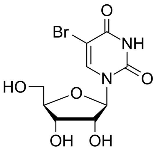 Keywords: 5-Bromouridine Haworth.svg Chemical structure of 5-Bromouridine 5-Bromouracil ribonucleoside; 1-β-Ribofuranosyl-5-bromo-uracil; 5-Bromouridin; BrUrd Own 16 15 6 November 2012 UTC Ed Edgar181 200px Pyrimidine nucleosides Organobromides Haworth projection |