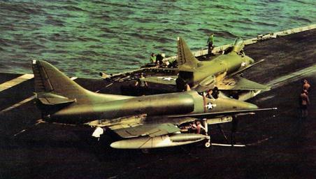 Keywords: A-4C VA-113 camouflaged 1966.jpg en Two U S Navy Douglas A-4C Skyhawk aircraft of Attack Squadron VA-113 Stingers on the catapult of the aircraft carrier USS Kitty Hawk CVA-63 during that carrier's deployment to Vietnam from 19 October 1965 to 13 June 1966 The U S Navy experimented with aircraft camouflage and painted half of the aircraft of Attack Carrier Air Wing 11 CVW-11 with dark green colours to blend in with the Vietnamese jungle The results proved inconclusive for the U S Navy whereas the U S Air Force concluded that the camouflage was effective U S Navy planes would not be camouflaged until the 1980s Note that oil from the engine oil breather has streaked the camouflage paint http //collections naval aviation museum/emuwebdoncoms/pages/doncoms/AdvQuery php U S Navy National Museum of Naval Aviation photo No http //collections naval aviation museum/emuwebdoncoms/pages/doncoms/Display php irn 16004245 QueryPage 2Femuwebdoncoms 2Fpages 2Fdoncoms 2FAdvQuery php 1996 253 4976 ca 1966 photographer PHC R E Rutledge USN PD-USGov-Military-Navy A-4C Skyhawk Flight deck of USS Kitty Hawk CV-63 Strike Fighter Squadron 113 United States Navy Aircraft camouflage |
