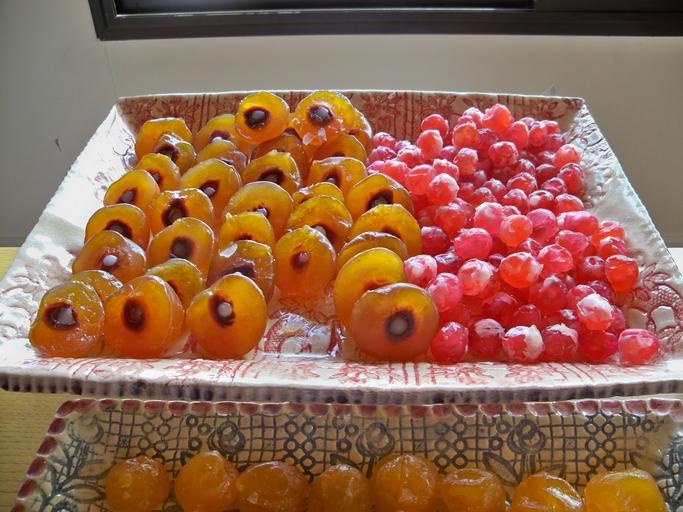 Keywords: Abricots et cerises confites.JPG en cherries and abricots as candied fruits fr abricots et cerises confites own Véronique PAGNIER 2010-09-17 Candied fruit from Vaucluse Cuisine of Provence Taken with Kodak EasyShare Z950 Maraschino cherries |