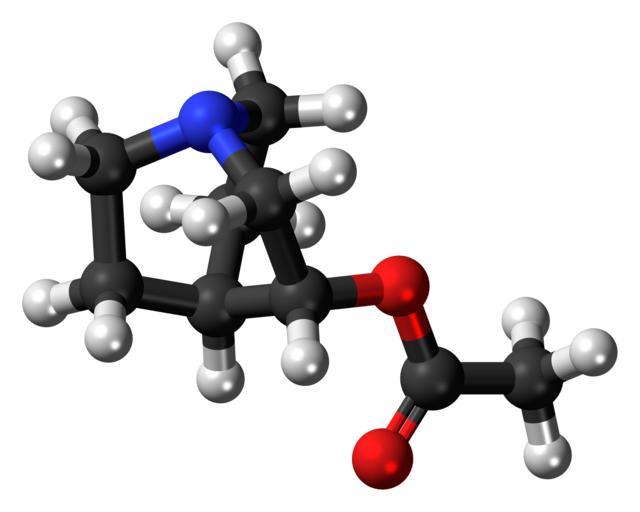 Keywords: Aceclidine 3D ball.png Ball-and-stick model of the Aceclidine molecule Colour code 505050 Carbon C black<br> F0F0F0 Hydrogen H white<br> F51E1E Oxygen O red<br> 3C50FA Nitrogen N blue<br> 2011-07-15 own DS Visualizer Jynto talk Space-filling version cc-zero Images by Jynto Ball-and-stick models Acetate esters Quinuclidines Muscarinic agonists |