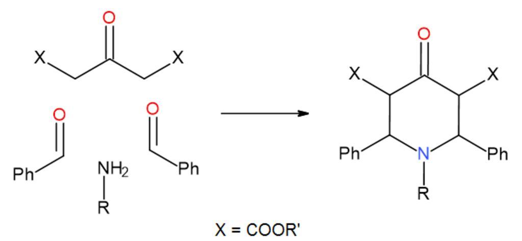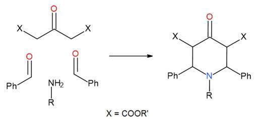 Keywords: Acetondicarboxylic-Piperidones-Synth.png en Petrenko-Kritschenko Piperidone Synthesis Formation of piperidones via cyclization of two moles of aldehyde and one mole each of acetonedicarboxylic ester and ammonia or a primary amine P Petrenko-Kritschenko et al Ber 39 1358 1906 ; 40 2882 1907 ; 41 1692 1908 ; 42 2020 3683 1909 ru Синтез пипе идонов по Пет енко-Ки иченко Об азование пипе идонов циклоконденсацией двух молей альдегида и одного моля ацетондика боновой кислоты с молем аммикак или пе вичного амина P Petrenko-Kritschenko et al Ber 39 1358 1906 ; 40 2882 1907 ; 41 1692 1908 ; 42 2020 3683 1909 2015-12-21 own Kurgus other versions cc-zero Acetonedicarboxylic acid Piperidones Mannich reaction Name reactions Uploaded with UploadWizard |