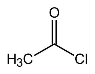 Keywords: Acetyl chloride.svg en Chemical structure of acetyl chloride de Strukturformel von Acetylchlorid own Dschanz 2008-09-03 Acetyl chloride