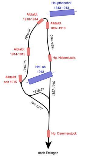 Keywords: Albtalbahn Streckenplan Karlsruhe.svg en Map of all stations and railway lines of the Albtalbahn in the city of Karlsruhe with year of opening and closing de Streckenplan mit Eröffnungs- und Stillegungsjahren der Strecken und Bahnhöfe der Albtalbahn im Karlsruher Stadtgebiet Own MCMC 2009-01-03 Albtalbahn |