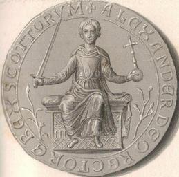 Keywords: Alexander II (Alba) i.JPG en Steel engraving and enhancement of the Great Seal of Alexander II King of Alba Scotland The Pictorial History of Scotland from the Roman Invasion to the close of the Jacobite Rebellion A D 79-1646 2 vols vol i London 1859 facing page 68 x 1859 author PD-old Alexander II of Scotland |