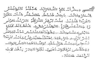 Keywords: Aljamiado.png Aljamiado text spanish written by arabic characters Author mancebo de Arévalo Date c 16th century Ejemplo de texto aljamiado de una obra del Mancebo de Arévalo El pasaje es una invitación dirigida a los moriscos o criptomusulmanes españoles para que sigan cumpliendo con las prescripciones islámicas a pesar de las prohibiciones legales y para que disimulen y se protejan mostrando adhesión pública a la fe cristiana Transcripción con la ortografía aproximada del castellano de la época <blockquote>Dixo un alim ulema d'este rreyno hablando de nuestro encerramiento «Yo bien conozco que somos en una temporada de grande espanto mas no por eso dexara Allah de darnos cautoriçada castigo si dexamos el pro'o el pro la ventaja de nuestro poderío en lo que toca al preçeptado mandamiento Y a quanto l'amonestança el disimulo la taqiyya todos la podemos usar por la bía prebilejiada y con los cantares ajenos por donde los christianos hacen salva pues todo cabe debaxo de buena disimulança porque la buena doctrina no la puede bedar ninguna ley por inumana que sea» </blockquote> PD-old-100 Arabic texts Mediaeval Castilian Moriscos Islam in Spain Aljamiado Castilian Arabic alphabet Arabic script Arabic script in non-Arabic languages |