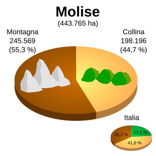 Keywords: Altimetria Molise.svg Ripartizione del territorio della regione per aree altimetriche Own 2008-03-16 Luigi Chiesa Own work all rights released Public domain Statistics of Italy Geography of Molise