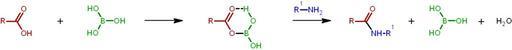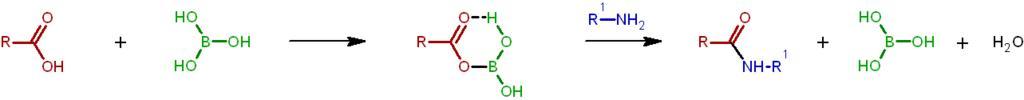 Keywords: Amidation-mechanism.png en Mechanism of amidation catalysed by boric acid pl Mechanizm amidowania katalizowanego kwasem borowym own Moja praca wzorowana na Organic Syntheses Vol 81 p 262 2005 Filips Filip Stefaniak Cc-zero Chemical reactions |