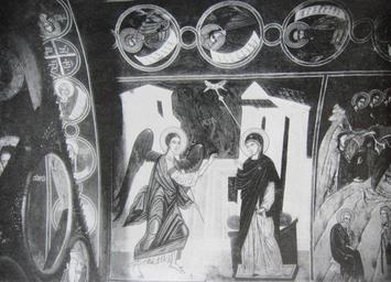 Keywords: Annunciation (Gelati fresco, 17th century).jpg en The Annunciation A fresco from the Gelati monastery century 17 ამირა აშვილი შ ქართული ხელ ვ ების ისტ რია Tbilisi 1971 author Orthodox frescos of Annunciation Frescos in Georgia Gelati Monastery Georgia in the 17th century Asomtavruli frescos PD-Art |