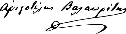 Keywords: Aristotelis-valaoritis-signature.svg en The signature of Aristotelis Valaoritis 1824-1879 Greek poet and politician el Η υ ογραφή του Αριστοτέλη Βαλαωρίτη 1824-1879 Έλληνα οιητή και ολιτικού < 1879 www greek-language gr Aristotelis Valaoritis 1824-1879 other versions PD-old-70-1923 Signatures of writers from Greece Aristotelis Valaoritis |