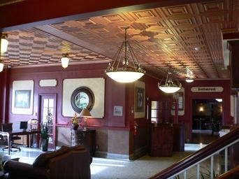 Keywords: Arrow Hotel interior lobby 2.2.JPG Arrow Hotel in Broken Bow Nebraska The building was constructed in Prairie School style in 1928 and is listed in the National Register of Historic Places It continues to function as a hotel and restaurant The camera is facing southeast; the main east entrance is just out of the frame to the left The photo was taken using ambient light; a similar photo taken with a flash has also been uploaded own Ammodramus 2010-06-03 Pictures by Ammodramus Taken with Panasonic Lumix DMC-FZ20 Arrow Hotel |