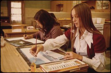 Keywords: ART CLASS STUDENTS AT CATHEDRAL SENIOR HIGH SCHOOL IN NEW ULM, MINNESOTA. THE TOWN IS A COUNTY SEAT TRADING CENTER OF... - NARA - 558216.jpg Scope and content General notes 558216 Local identifier 412-DA-15766 Environmental Protection Agency 12/02/1970 - NARA-Author Haque Abul Photographer 8467822 <br /> New Ulm Brown Minnesota United States North and Central America inhabited place 4202438 44 3 -94 45 <br /> Still Picture Records Section Special Media Archives Services Division NWCS-S National Archives at College Park 8601 Adelphi Road College Park MD 20740-6001 10/1974 Record group Record Group 412 Records of the Environmental Protection Agency 1944 - 2006 Record group ARC 708 DOCUMERICA The Environmental Protection Agency's Program to Photographically Document Subjects of Environmental Concern compiled 1972 - 1977 Series ARC 542493 File unit File unit ARC Variant control numbers Agency-Assigned Identifier 263/46/015766<br /> NAIL Control Number NWDNS-412-DA-15766 Other versions <gallery> File ART_CLASS_STUDENTS_AT_CATHEDRAL_SENIOR_HIGH_SCHOOL_IN_NEW_ULM _MINNESOTA _THE_TOWN_IS_A_COUNTY_SEAT_TRADING_CENTER_OF _-_NARA_-_558216 tif tif File ART_CLASS_STUDENTS_AT_CATHEDRAL_SENIOR_HIGH_SCHOOL_IN_NEW_ULM _MINNESOTA _THE_TOWN_IS_A_COUNTY_SEAT_TRADING_CENTER_OF _-_NARA_-_558216 jpg jpg </gallery> NARA-cooperation PD-USGov October 1974 in Minnesota |