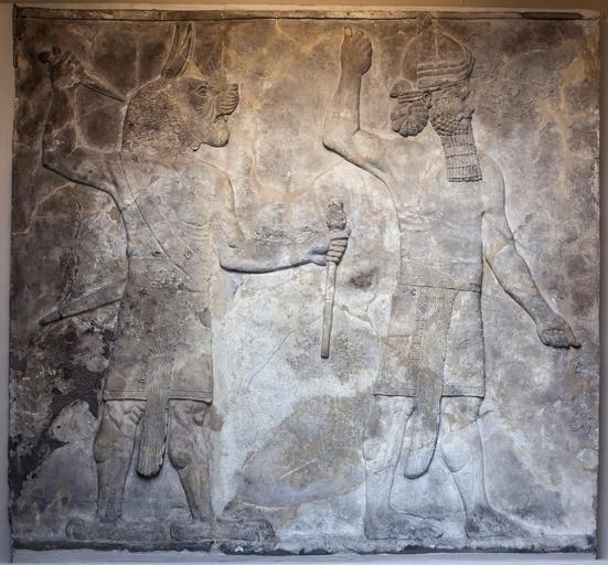 Keywords: Assyriska palatsvakter.jpg sv Assyrisk panel 704-681 f Kr föreställande tvÃ¥ palatsvakter den lejonhövdade Ugallu och en mansfigur med gudomlig hornprydd huvudbonad Panelen finns pÃ¥ British Museum en Assyrian panel 704-681 BC showing two palace guards lion-headed Ugallu and a man wearing the horned headdress of a god On display at the British Museum 2013-03-30 11 11 55 own cultural heritage Ž cc-zero Uploaded with UploadWizard Reliefs from Assyria |