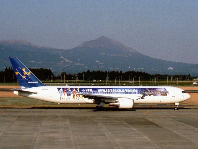 Keywords: B767-3Q8ER JA767A.jpg en Skymark Airlines B767-3Q8ER JA767A ja スカイマーク ーイング767-3Q8ER JA767A Boeing 767-3Q8ER JA767A Skymark Airlines スカイマーク taxing photograph Kagoshima Airport 鹿児島空港にて 2004-03-09 Cassiopeia_sweet Photo by Cassiopeia_sweet Trademarked JA767A aircraft Kagoshima Airport Anime and manga advertisements on aircraft in Japan Space Battleship Yamato 2003 advertisements March 2004 in Japan 2004 in aviation in Japan |