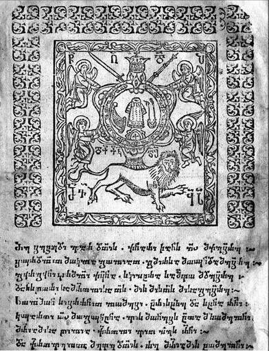 Keywords: Bagrationi COA (1713).JPG en One of the earliest coat of arms of the Bagrationi dynasty with a rhymed explanation of its symbols A page from the Liturgies printed in Tbilisi in 1713 under the auspices of Vakhtang VI of Kartli საქართველ ს პარლამე ტის ერ ვ ული ბიბლი თეკა ვახტა გ -ის სტამბის გამ ცემები 1709-1722 შემდგ დალი მაჩაიძე თბ 2009 Author 1713 80px 80px 80px PD-old-100 1713 in Tbilisi Vakhtang VI Bagrationi dynasty coats of arms Nuskhuri letters |