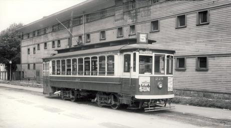 Keywords: vehicle train outdoor building architecture B.C. Elecric Railway Co. streetcar No. 229 on special trackage on 1900-block Alberni Street next to the Stanley Park Armouries building (ex-Horse Show Building) at Gilford Street in Vancouver, BC. Photograph taken August 15, 1948. [Ernie L. Plant, photographer] B.C. Elecric Railway Co. streetcar No. 229 on special trackage on 1900-block Alberni Street next to the Stanley Park Armouries building (ex-Horse Show Building) at Gilford Street in Vancouver, BC. Photograph taken August 15, 1948. [Ernie L. Plant, photographer] |