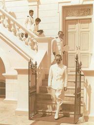 Keywords: Bhumibol Adulyadej entered a 15-day monkhood (12).jpg en Bhumibol Adulyadej entered a 15-day monkhood 1956-10-22 Bureau of the Royal Household Kingdom of Thailand author other versions Custom license marker 2016 10 15 PD-Thailand Bhumibol Adulyadej in 1956 |