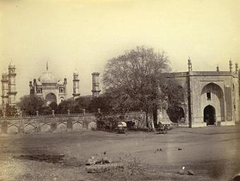 Keywords: Bibi-ka-Maqbara, Aurangabad in the 1860s.jpg en This photograph was taken in the 1860s for the Allardyce Collection It shows the Bibi-ka-Maqbara or Queen's Tomb 1678 the most famous building in Aurangabad After the death of his wife Rabia Durani in 1657 the Mughal Emperor Aurangzeb reigned 1658-1707 ordered his son Azam Shah to build a mausoleum for her It was designed by the architect Ata Aula as an imitation on a reduced scale of the Taj Mahal at Agra Lack of funds meant that it fell short of the original plan The mausoleum is situated in the centre of a walled enclosure with a garden surrounded by a crenellated wall with bastions It is a square building with a pointed arch to each front covered by a large dome with four corner minarets This print was taken by an unknown photographer in the 1860s s 1860 http //www oldindianphotos in/2010_09_12_archive html author other versions Custom license marker 2014 12 30 PD-100 Uploaded with UploadWizard Aurangabad in the 1860s Bibi Ka Maqbara |