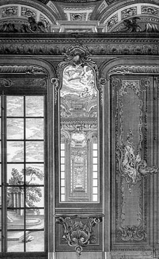 Keywords: Bieliński Palace 04.jpg Decoration of a room in the Bieliński Palace in Warsaw Dekoracja gabinetu w Pałacu Bielińskich w Warszawie engraving paper cm 54 34 Wrocław Institution National Ossoliński Institute Wrocław Perhaps the most unrestrained of all rococo interiors with painted panels representing Zephyr and Flora and Venus and Adonis pier-glasses and a painted ceiling decorated with the chariot of the Sun Muses and groups of emblematic of the Arts and Sciences Engraving from the Oeuvre de Juste Aurèle Meissonnier Inscriptions Cabinet de Mr le Comte Bielenski Grand Marechal de la Couronnede / J A Meissonnier inv Chenu Sculp /A Paris chés Huquier rue St Jacque au coin de celle des mathurins C P R Władysław Łoziński 1958 Życie polskie w dawnych wiekach Wydawnictwo Literackie ca 1745 Pierre Chenu after Copyright expired PD-Art Other versions PD-old-100 Pier glasses Juste-Aurèle Meissonnier Prints in the Ossolineum in Wrocław Bieliński Palace in Warsaw Pierre Chenu |