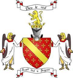 Keywords: Blason famille de Belleval (avec ornements).svg fr Blason de la famille de Belleval de gueules à la bande d'or sur un semé de croix recroisettées au pied fiché de même l'écu tenu par deux anges au naturel à la couronne de marquis et au lion d'or en cimier Devise Avant tout le Seignore Cri Dieu le veut own Syryatsu 2009-03-20 SVG coats of arms of families of France 1 bend or Semy of Crosses Crosses crosslet in heraldry Cross fitché in heraldry Gules and Or in heraldry Angels in supporters Lions rampant in crest |