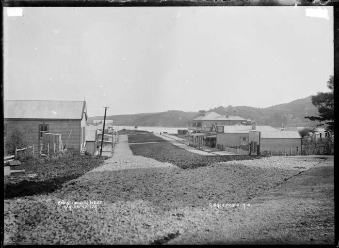 Keywords: blackandwhite monochrome outdoor photo border black and white View along Bow Street, Raglan, looking west, photographed in 1910, probably by Gilmour Brothers Store, Raglan (Robert Gilmour, proprietor). The Harbour View Hotel is partially visible centre right. Inscriptions: Inscribed - Photographer's title on negative -bottom left: Bow St. Looking West. Raglan N.Z. 120bottom right: G Bros Protd 1.7.10. Quantity: 1 b&w original negative(s). Physical Description: Dry plate glass negative 4.5 x 6.5 inches Gilmour Brothers (Firm). Bow Street looking west, Raglan, July 1910 - Photograph taken by Gilmour Brothers. Price, William Archer, 1866-1948 :Collection of post card negatives. Ref: 1/2-001053-G. Alexander Turnbull Library, Wellington, New Zealand. natlib.govt.nz/records/23126039 View along Bow Street, Raglan, looking west, photographed in 1910, probably by Gilmour Brothers Store, Raglan (Robert Gilmour, proprietor). The Harbour View Hotel is partially visible centre right. Inscriptions: Inscribed - Photographer's title on negative -bottom left: Bow St. Looking West. Raglan N.Z. 120bottom right: G Bros Protd 1.7.10. Quantity: 1 b&w original negative(s). Physical Description: Dry plate glass negative 4.5 x 6.5 inches Gilmour Brothers (Firm). Bow Street looking west, Raglan, July 1910 - Photograph taken by Gilmour Brothers. Price, William Archer, 1866-1948 :Collection of post card negatives. Ref: 1/2-001053-G. Alexander Turnbull Library, Wellington, New Zealand. natlib.govt.nz/records/23126039 |