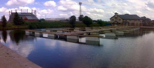 Keywords: Bridgewater canal near haig road stretford.jpg Bridgewater canal near Haig Road in Stretford This area is brand new The view is looking East Own 2007-07-16 Parrot of Doom Bridgewater Canal Stretford Marinas in England Gasometers in England