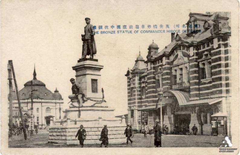Keywords: Bronze Statue of Commander of Hirose in Tokyo.jpg en The Bronze Statue of Commander Hirose Takeo in Manseibashi Station in Tokyo ja 京名 萬世橋 車場前廣 中佐銅像 between 1912 1923 before 1945 <br/>Note Manseibashi Station was opened in 1912 as brick building however it was destroyed in 1923 by 1923 Great Kantō earthquake Great Kantō earthquake http //www tobunken-archives jp/DigitalArchives/Image jsp lang en id 4B1B9EC4-D90A-6469-26E8-2E742E427301 title EF BC 88 E6 9D B1 E4 BA AC E5 90 8D E6 89 80 EF BC 89 E4 B8 87 E4 B8 96 E6 A9 8B E5 81 9C E8 BB 8A E5 A0 B4 E5 89 8D E5 BA 83 E7 80 AC E4 B8 AD E4 BD 90 E9 8A 85 E5 83 8F Tohoku University of Art and Design author PD-Japan-oldphoto Uploaded with UploadWizard Manseibashi Station History of Tokyo Postcards of Tokyo Statues in Tokyo Takeo Hirose Sugino Magoshichi 1912 in Akihabara Akihabara in the 1920s 1923 in Akihabara |