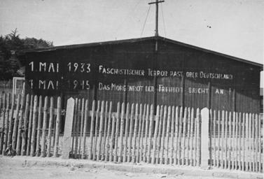 Keywords: Buchenwald Barracks 75028.jpg View of an inscription printed in large block letters on the wall of a barrack in the Buchenwald concentration camp The inscription on the building reads 1 May 1933 Fascist terror reigns over Germany 1 May 1945 Sunrise brings the dawn of freedom The original photo caption reads Shows where people have been there since 1933 Buchenwald was in full swing about 1935 Thousands died daily from typhus dysentery and T B Most of them died in the crematory or the lime pit William B Duff served in the 117th Infantry Medical Detachment as a surgical technician He participated in the invasion of Normandy and the fighting in Northern France the Rhineland Central Europe and the Ardennes He also helped provide medical assistance to survivors of the Buchenwald concentration camp Photographed by William B Duff Buchenwald Thuringia Germany April 1945 - May 1945 http //www ushmm org/ United States Holocaust Memorial Museum courtesy of Marilyn Sutherland PD-USGov Buchenwald barracks Buchenwald liberation Images from the United States Holocaust Memorial Museum |