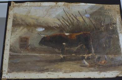 Keywords: Bull Standing with Chickens, by Frank Reaugh, undated, oil on canvas - Harry Ransom Center - University of Texas at Austin - DSC08473.jpg en Painting by Frank Reaugh 1860-1945 exhibited in the Harry Ransom Center University of Texas at Austin Austin Texas USA This artwork is in the public domain because the artist died more than 70 years ago 2015-11-17 16 48 31 own Daderot other versions PD-old-70 cc-zero Paintings by Frank Reaugh in the Harry Ransom Center |
