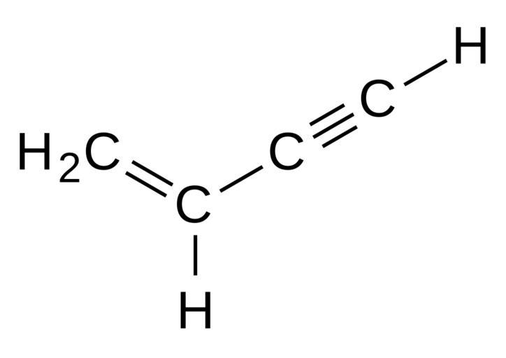 Keywords: But-1-en-3-yne.svg en Chemical structure of but-1-en-3-yne de Strukturformel von But-1-en-3-in Vinylacetylen Own work drawn with BKChem Dschanz 2008-07-10 Image Vinylacetylene-2D-skeletal png Vinylacetylene