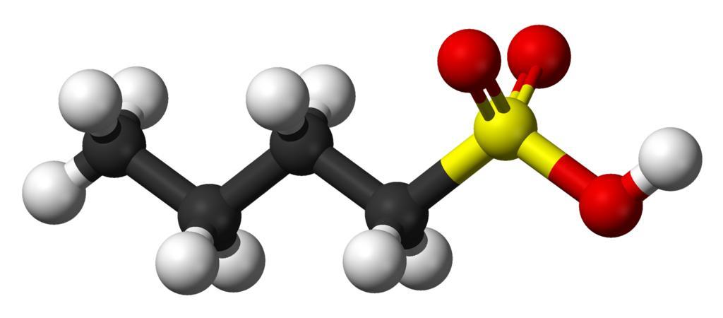 Keywords: Butanesulfonic-acid-3D-balls.png Ball-and-stick model of the butanesulfonic acid molecule Derived from File Ethanesulfonic-acid-3D-balls png 2010-06-11 Ben Mills and Jynto Sulfonic acids Ball-and-stick models Butyl compounds Images by Jynto |