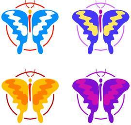 Keywords: butterflies four colorful colors golden yllow pink purple violet blue encircled circles patterns designs decorative tatoos decorations group collection insects butterfly nature wildlife