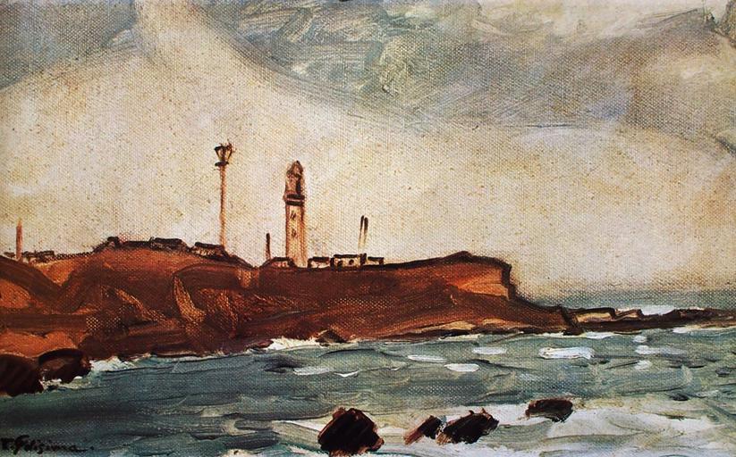 Keywords: Cape Inubo Lighthouse by Fujishima Takeji.jpg en Cape Inubo Lighthouse by Fujishima Takeji ja 犬吠岬の灯台 藤島武二筆 http //blog livedoor jp/haroshiro/archives/51949443 html Fujishima Takeji 1867-1943 1940 PD-Japan PD-old-auto 1943 Takeji Fujishima Inubosaki Lighthouse |