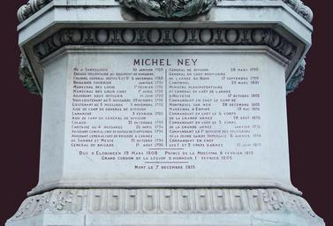Keywords: Carrière Michel Ney socle statue.jpg Marshall Michel Ney The Bravest of the Brave in Paris relating his military career during the Revolution and Napoleonic wars Maréchal Michel Ney Le Brave des Braves à Paris relatant sa carrière militaire durant les guerres de la Révolution et de l'Empire own Jebulon please see metadata 48 50 25 N 2 20 10 7 E Pedestals Statue of Michel Ney by François Rude Inscriptions in Paris Quality images by Jebulon Quality images of architectural elements in Paris PD-old QualityImage |